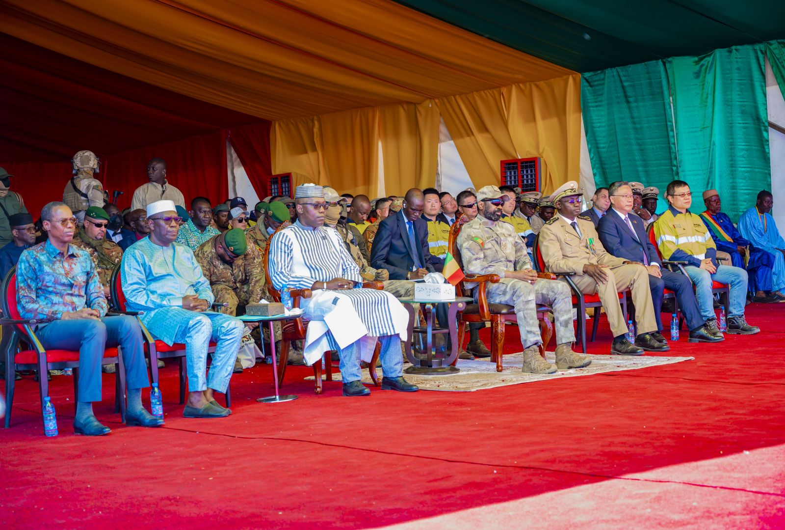當地時間12月15日,贛鋒鋰業Goulamina鋰輝石一期項目投產儀式在非洲馬里舉行。馬里過渡總統阿西米·戈伊塔(Assimi Goita),馬里礦業部長阿馬杜·凱塔(Amadou Keita),馬里財經部長阿盧塞尼·塞努(Alousséni Sanou),中國駐馬里大使陳志宏,贛鋒鋰業集團總裁王曉申,資深副總裁徐建華,資深副總裁向偉東,副總裁李承霖,贛鋒澳洲區域總經理王文波,項目公司總經理Seydou及項目公司員工,當地社區代表等出席揭幕儀式。