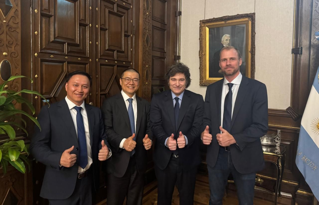 阿根廷時間2月10日,贛鋒鋰業總裁王曉申及贛鋒南美區域負責人羅曉峰一行,拜訪阿根廷總統Javier Milei(哈維爾·米萊)、經濟部長 Luis Caputo、內閣首席部長 Guillermo Alberto Francos等領導,并就阿根廷鋰行業前景、深化合作等議題展開深入交流,進一步鞏固贛鋒在阿根廷的戰略布局。